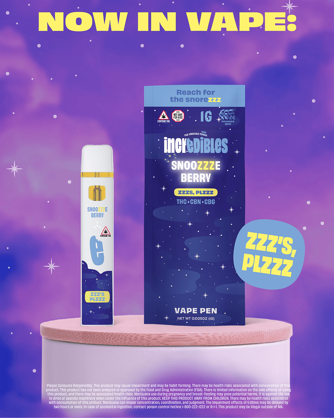 Snoozzzeberry (Sleep 14:1:1 THC:CBN:CBG) 1g Dispo Pen - Incredibles